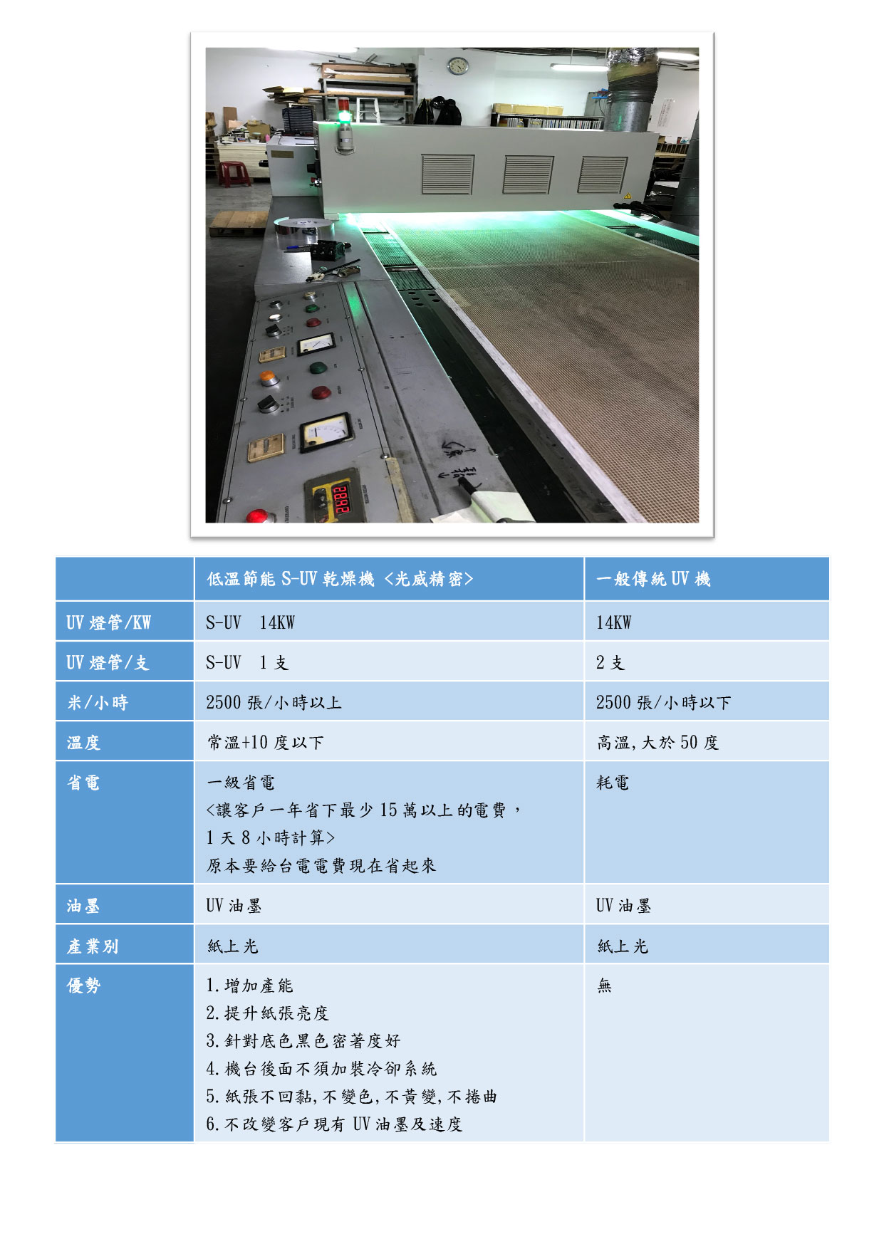 紙張局部上光廠改裝低溫節能S-UV乾燥機